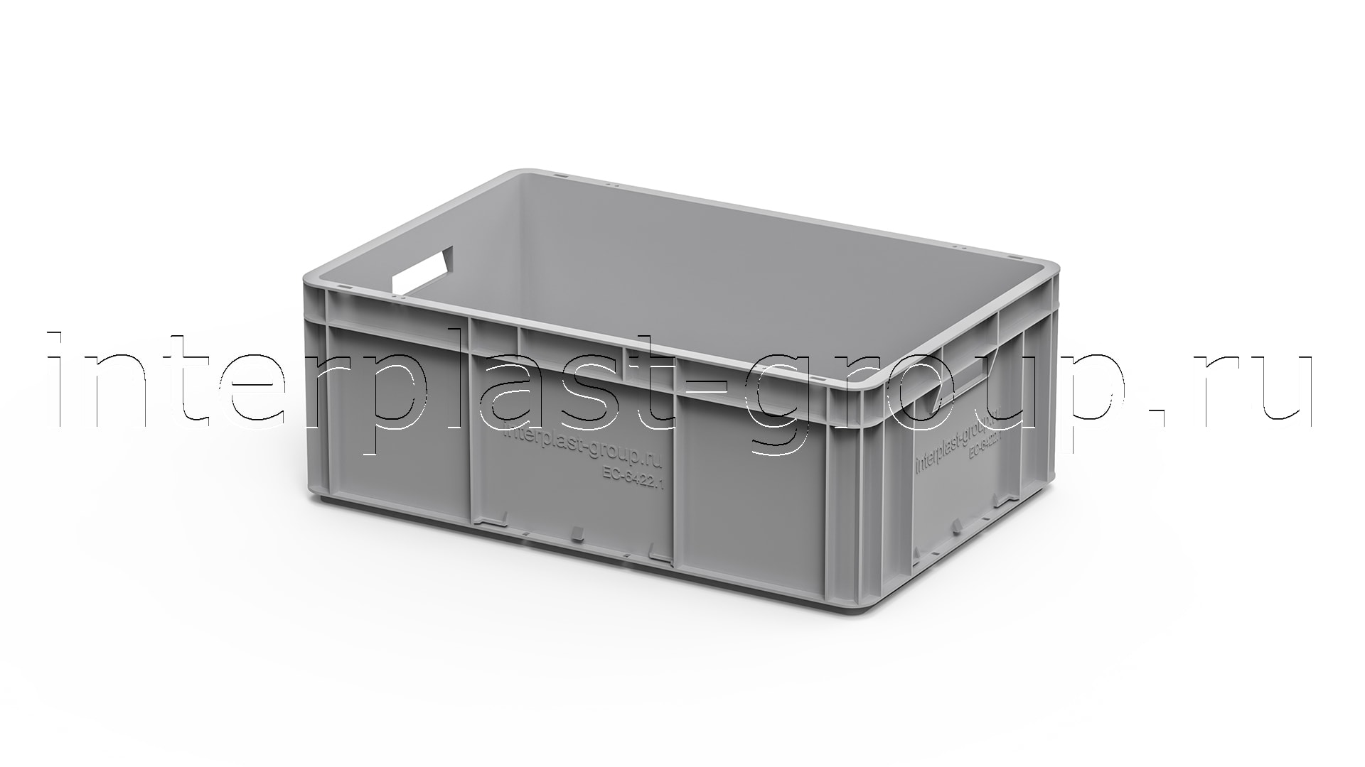 Евроконтейнер открытые ручки/сплошное дно (серый), 600x400x220 мм