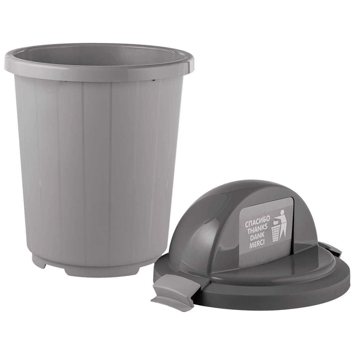 Выберите серый мусорный бак с крышкой-клавишей на колесах для современного и удобного подхода к управлению отходами в вашем доме, офисе или любом другом пространстве.