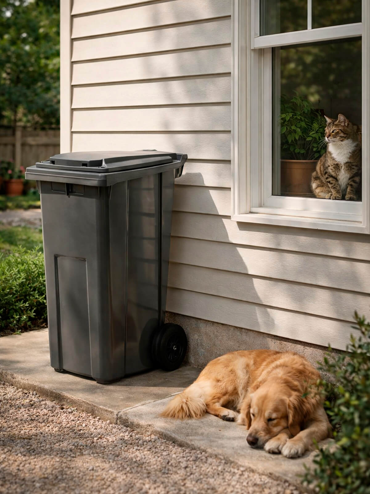 Серый бак для мусора помогает организовать аккуратный и понятный сбор отходов, поддерживает чистоту и остаётся эстетичным на территории. Это надёжный контейнер для сбора мусора для ежедневной эксплуатации.