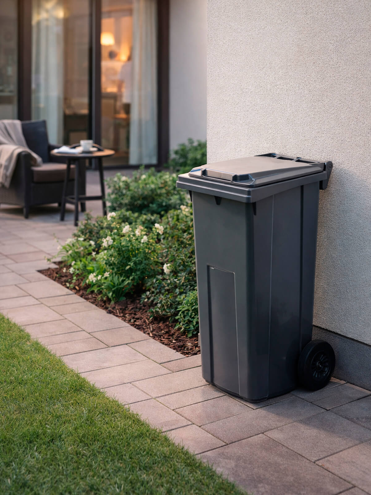 Серый контейнер для мусора 120 л — практичное решение для домовладений, дворов многоквартирных домов, ТСЖ, предприятий и муниципальных объектов. Нейтральный серый цвет традиционно используется для смешанных и твёрдых бытовых отходов, поэтому такой мусорный контейнер уличный идеально подходит для городских дворов и коммерческих объектов.