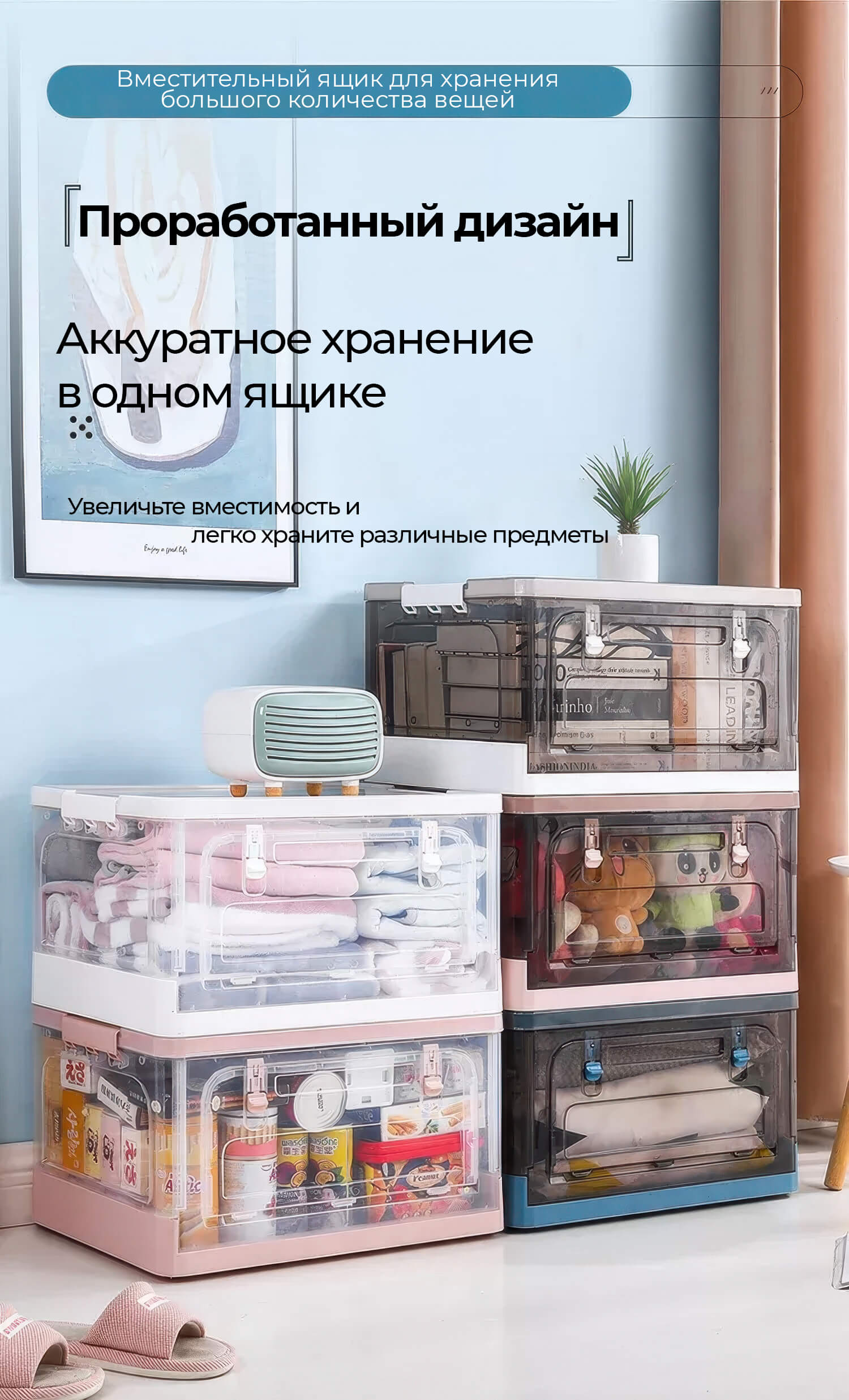 Пластиковая коробка с крышкой надежно защищает вещи от пыли и влаги, сохраняя их в чистоте. Прочная конструкция выдерживает ежедневные нагрузки, а складной механизм позволяет компактно хранить ящик, когда он не используется.