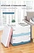 Стильный внешний вид – сочетание молочного и голубого цветов создает ощущение чистоты и порядка.