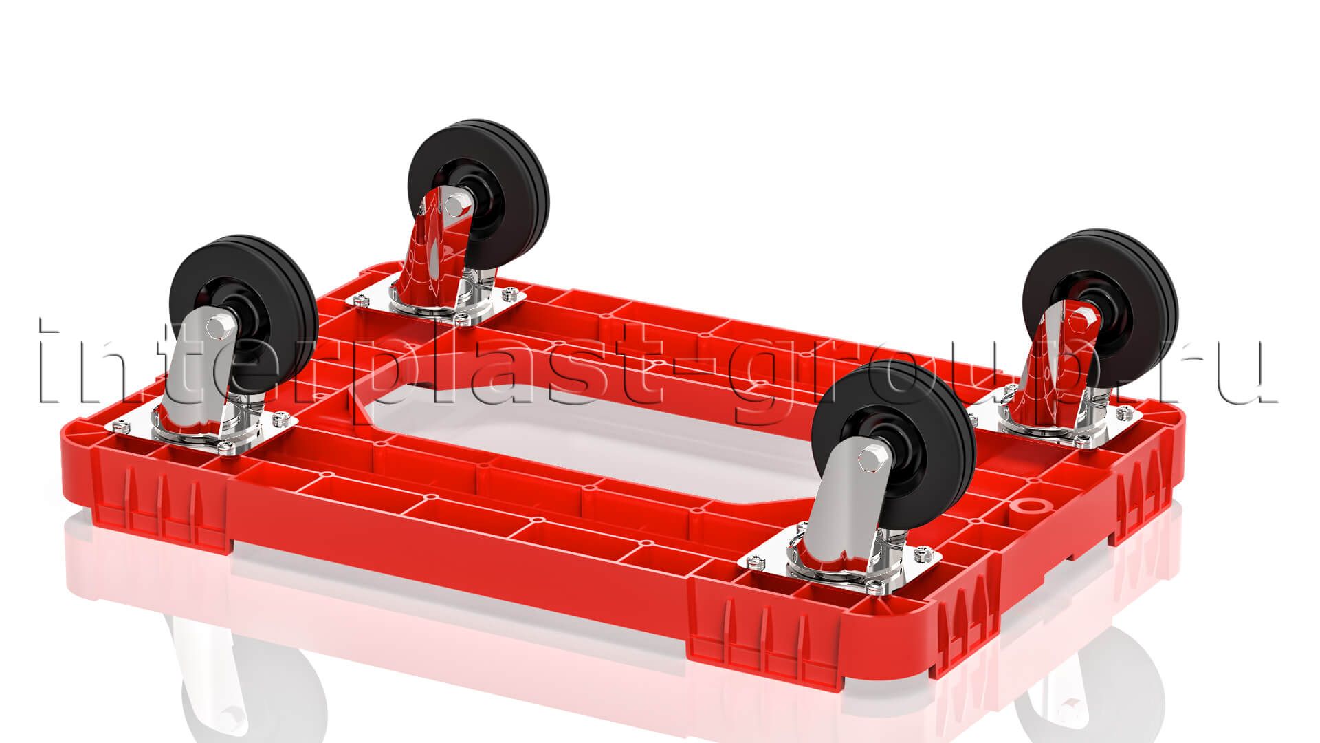 Тележка пластиковая с отверстием без тормозов красная в Обнинске
