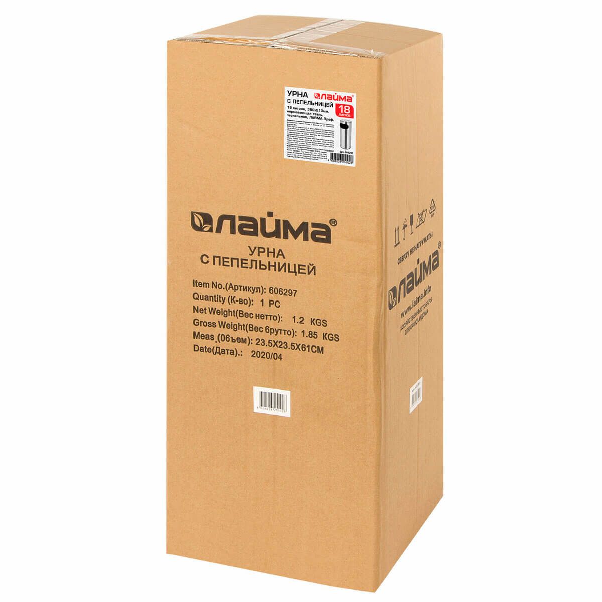 Урна с пепельницей 18 литров, нержавеющая сталь, зеркальная, LAIMA PROFESSIONAL